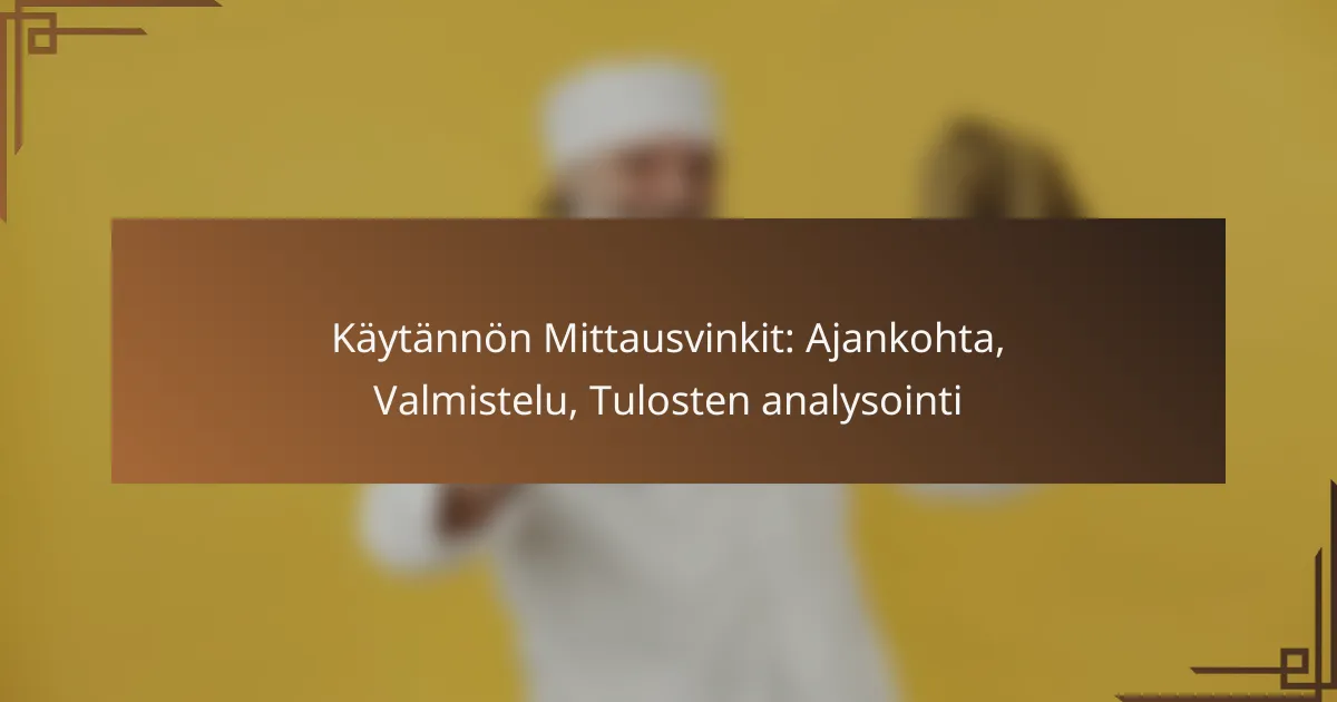 Tulosten analysointi on keskeinen osa mittausprosessia, sillä se auttaa ymmärtämään, mitä mittaukset todella kertovat. Analysoimalla tuloksia voit tunnistaa mahdolliset virheet ja poikkeamat, jotka voivat vaikuttaa päätöksentekoon. Käytä tilastollisia menetelmiä, kuten keskiarvojen ja hajontojen laskemista, saadaksesi syvällisemmän käsityksen tuloksista.