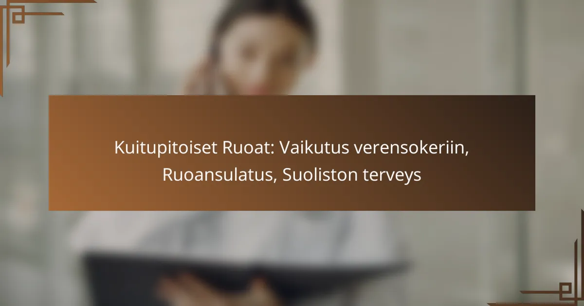 Kuitupitoiset ruoat tarjoavat merkittäviä terveyshyötyjä, kuten verensokerin hallinnan parantamisen ja ruoansulatuksen tehostamisen. Ne tukevat myös suoliston terveyttä ja voivat auttaa painonhallinnassa. Oikeiden kuitupitoisten vaihtoehtojen valinta ruokavaliossa voi merkittävästi vaikuttaa hyvinvointiin.